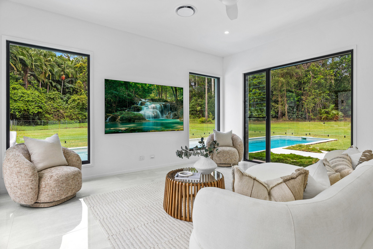 Custom designed by the renowned Icon Building Design Sunshine Coast in 2021, the home has been thoughtfully designed to embrace light, space and its stunning rainforest surrounds, while remaining highly convenient to key Sunshine Coast amenities.
